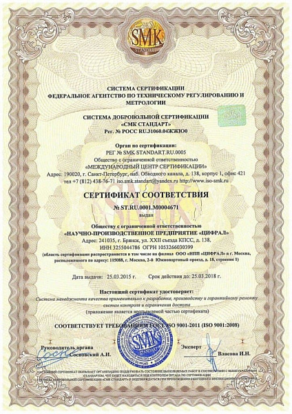 Собственная инженерная и производственная база, расположенная в Российской Федерации, в городе Брянск, современные технологии, система качества, сертифицированная на соответствие требованиям ГОСТ Р ИСО 9001-2011 (ISO 9001:2008) позволяют предприятию "Цифрал" выпускать продукцию, соответствующую современным мировым стандартам, оперативно реагировать на требования клиентов, предлагать принципиально новые разработки, удовлетворяющих их запросам.Компания, использующая цифровые технологии в производстве домофоной продукции не только идет в ногу со временем, но и применительно к российским реалиям, во многом опережает его. Так конструкторское бюро, работает на лицензионной системе трёхмерного автоматизированного проектирования Pro/ENGINEER компании РТС (США). Этот интегрированный программный комплекс (CAD/CAM/CAE) - принципиально новый подход к разработке и подготовке изделия к производству.