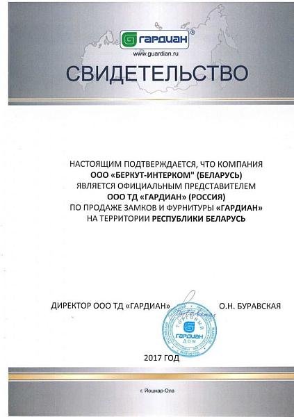 ООО "Беркут-ИНТЕРКОМ" - официальный представитель "Гардиан" в Республике Беларусь