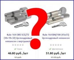 Задайте эти три параметра, а так же наличие или отсутствие вертушки в фильтр и выберите из доступных моделей. Различие в цене зачастую обеспечено классом материала, из которого изготовлен цилиндр, а так же наличием "фишек" для обеспечения безопасности. К примеру в знаменитом бренде Kale Kilit серии OBS присутствуют следующие механизмы безопасности: